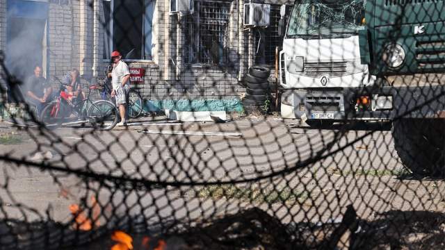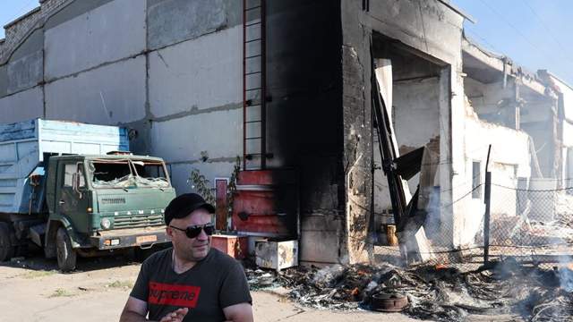 Корреспондент телеканала «Известия» Иван Литомин одним из первых оказался на месте обстрела. Ему удалось попасть на территорию промзоны, где был взрыв. Он показал сгоревшие склады и грузовые автомобили, которые перевозили мирные грузы.
