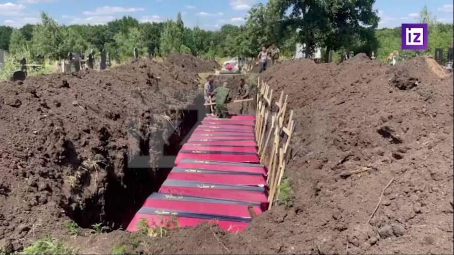 Перезахоронение останков жертв украинской агрессии в поселке Овсяное