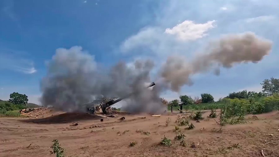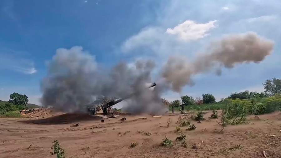 Министерство обороны России показало кадры работы самоходных артиллерийских установок (САУ) 2С-19 «Мста-С» в зоне проведения специальной военной операции по защите Донбасса в субботу, 16 июля.
