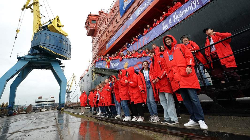 На нашем рейсе туристов нет, он организован в рамках проекта «Росатома» Homo Science, цель которого — популяризация среди молодежи науки и технологий. В путешествие к Северному полюсу отправились более 60 детей — победители всероссийского детского интеллектуального проекта «Ледокол знаний. Homo Science Project», VII всероссийской премии «За верность науке», лидеры «Школы «Росатома», члены клуба «Легенды Арктики» и другие одаренные школьники и студенты. Средний возраст детей в экспедиции — 14 лет, самому младшему участнику исполнилось 12.