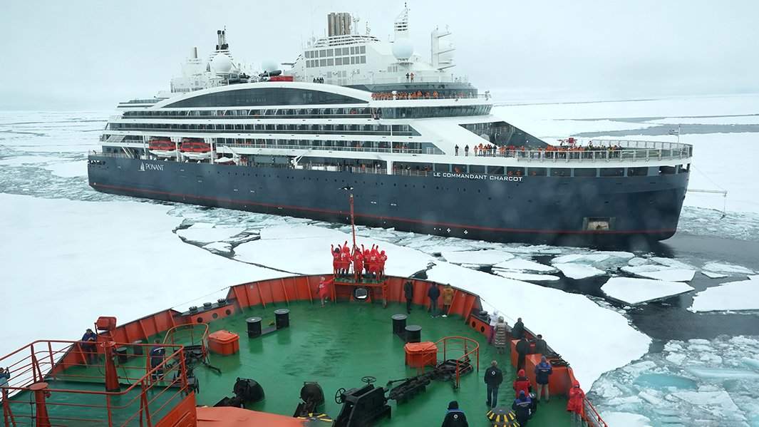 Чего не ожидаешь в Арктике — так это встретить других туристов, да еще и на судне, похожем на круизный лайнер.