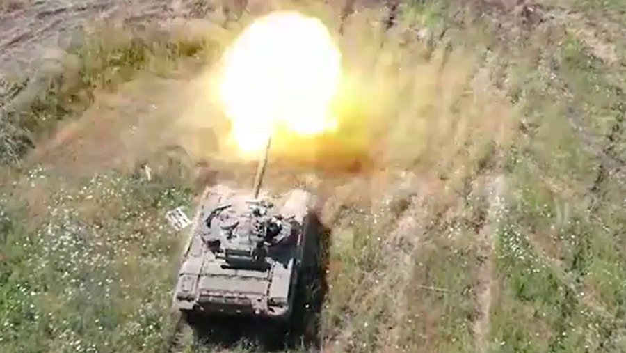 «Экипажи получили задание: сначала вождение — круг 6 км. А затем уже стрельба. Два танка выдвигаются под прикрытием двух БМП», — сказал журналист.