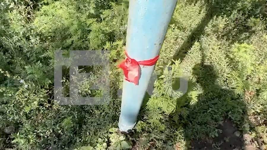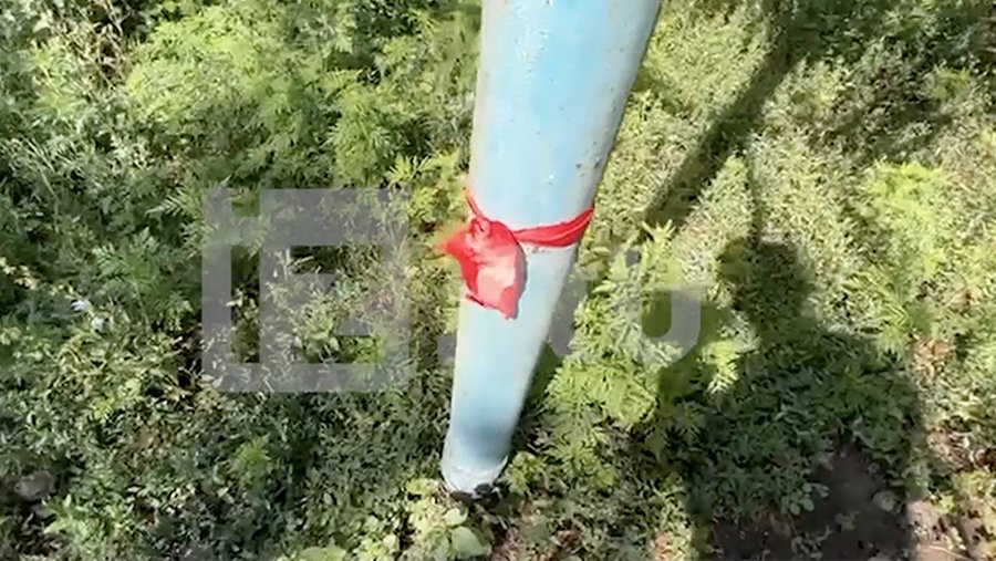 Российские военные места, где находятся мины, отметили красными лоскутами ткани. Их довольно много.