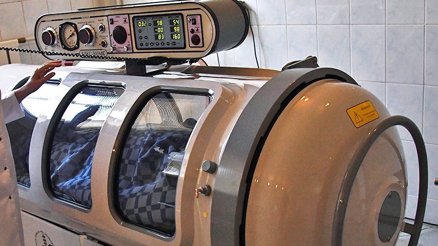 Данный аппарат весит 200 кг. Под воздействием особого давления клетки организма усваивают кислород в несколько раз быстрее, чем обычно.