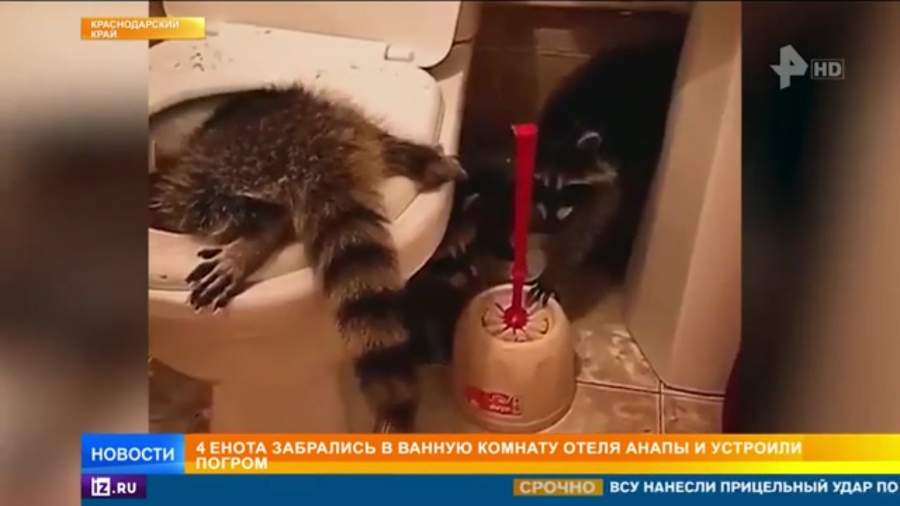 Еноты пробрались в ванную отеля и устроили погром