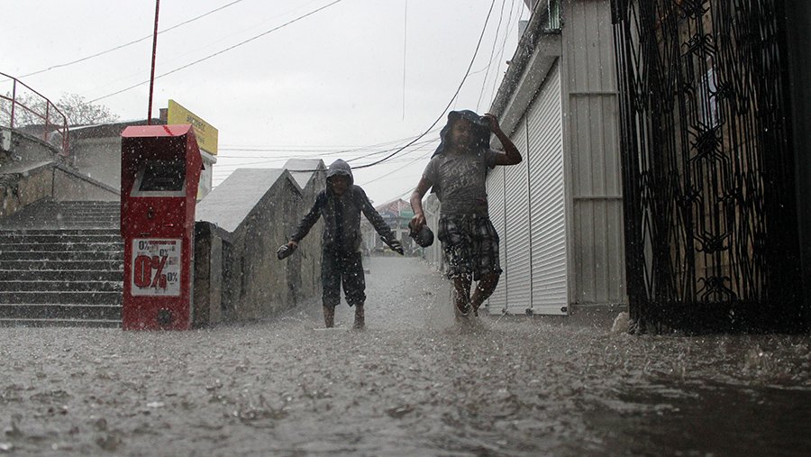 Около трех часов дня гроза и залповый ливень начался в Симферополе, в некоторых районах города выпал град. Многие улицы не справились с отведением воды и превратились в реки.
