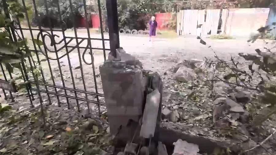 На кадрах видно, что ударами были разбиты окна в домах, пробиты калитки и заборы.