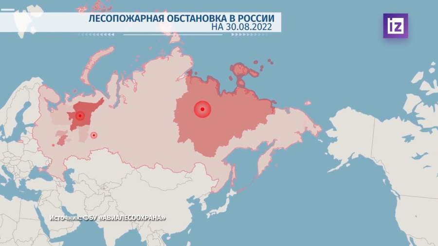 Карта Пожары в России 30.08.2022