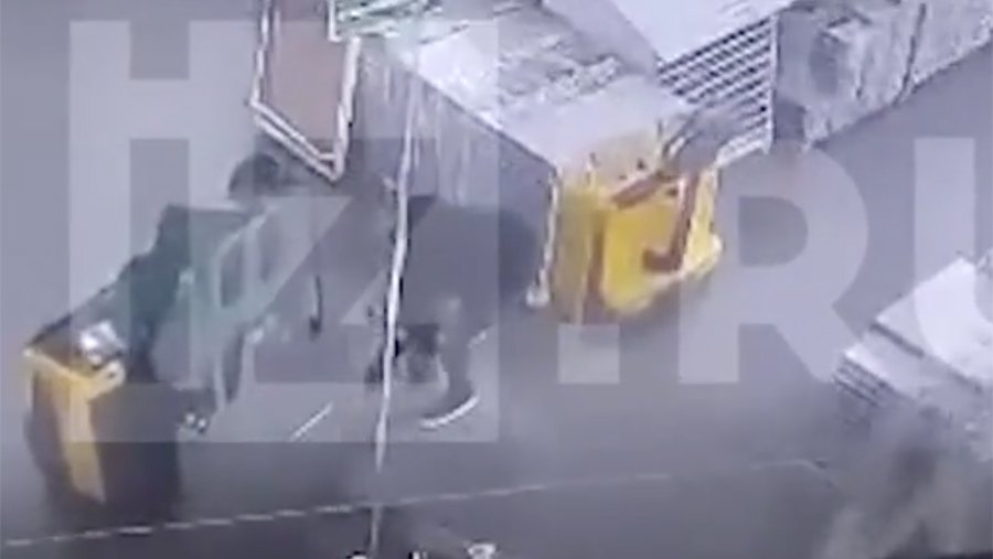 На кадрах видно, что мальчик выбежал наперерез водителю погрузчика и мужчина не успел затормозить.