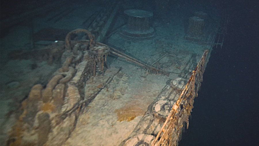 Как стало известно, экспедиция погрузилась на 4 тыс. м к месту крушения легендарного лайнера, чтобы сделать эксклюзивные по качеству съемки. Снятое видео позволяет точно и детально разглядеть нос корабля, якорь левого борта, первый корпус, огромную якорную цепь, грузовой отсек номер один и прочные бронзовые опоры.