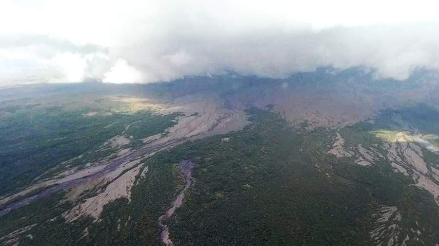 Вертолет, вылетевший на помощь туристам, из-за плохих погодных условий не смог высадить спасателей на вулкане, они вернутся в воскресенье.