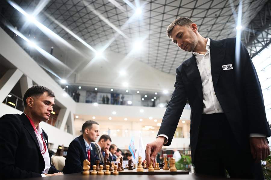 Вице-чемпион мира по шахматам Сергей Карякин провел сеанс одновременной игры с участниками форума