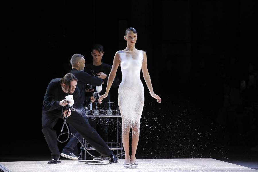 На Неделе моды в Париже представители французского бренда Coperni создали жидкое платье на модели Белле Хадид прямо во время показа