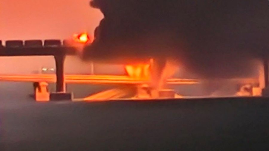 О возгорании на Крымском мосту в субботу, 8 октября, сообщил советник главы Крыма Олег Крючков. При этом судоходные участки повреждены не были. Как сообщила журналист Вероника Котькова с места событий, произошло возгорание топливного состава.