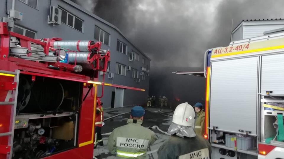 Площадь пожара в ангаре в Екатеринбурге увеличилась до 2,5 тыс. кв. м