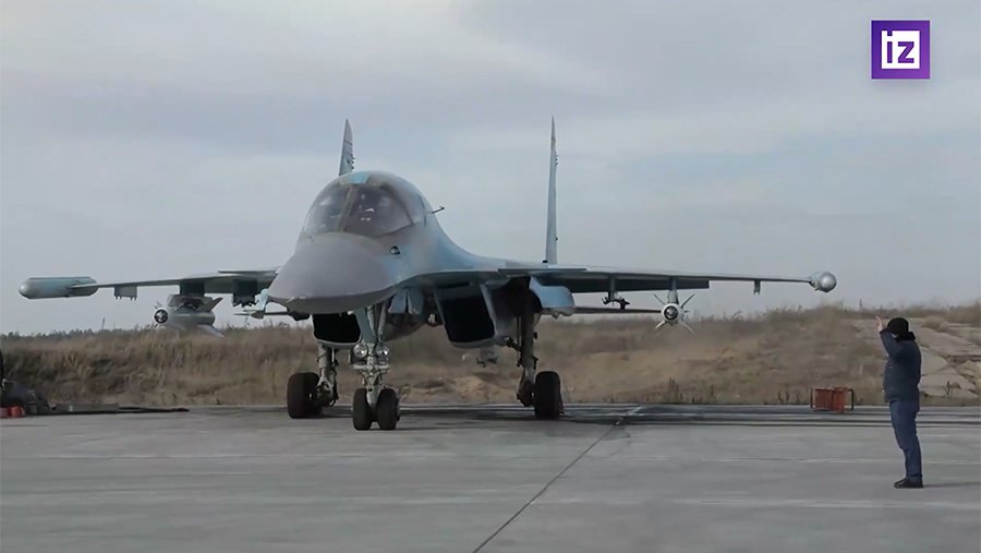Министерство обороны России опубликовало видеозапись боевых вылетов экипажей истребителей-бомбардировщиков Су-34 по уничтожению военной инфраструктуры и техники вооруженных сил Украины (ВСУ).