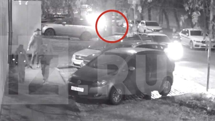 На кадрах видно, как полицейские ведут подозреваемого к служебному автомобилю.