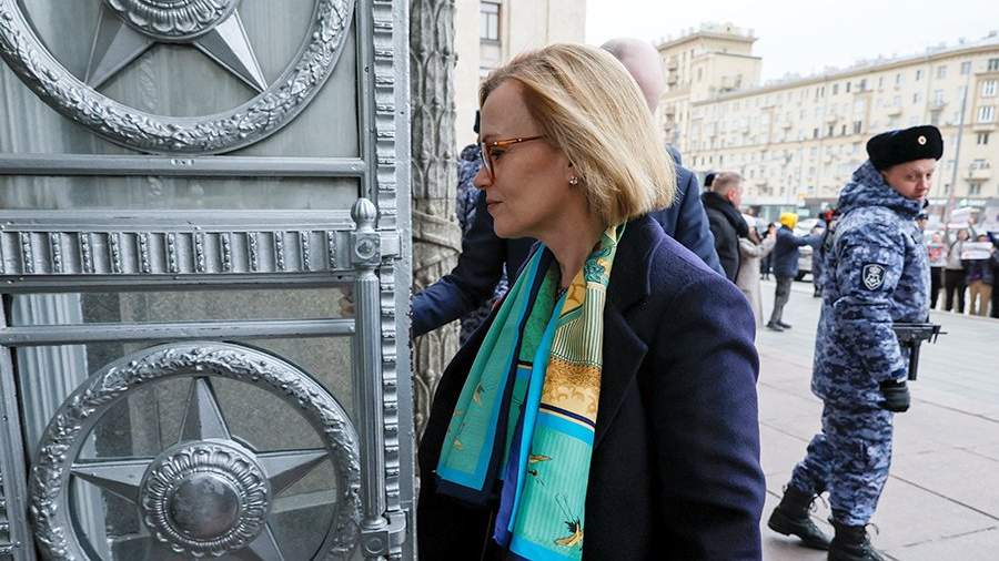 Дебора Броннерт приехала в МИД РФ ранее в четверг. Перед визитом посла в министерство на улице собрались люди. Они встретили ее лозунгами «Британия — страна-террорист».