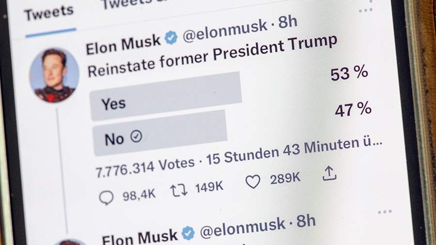 Илон Маск устроил опрос о восстановлении аккаунта Дональда Трампа накануне, 18 ноября. Голосование с двумя вариантами ответа — «да» или «нет» — должно было продлиться 24 часа.