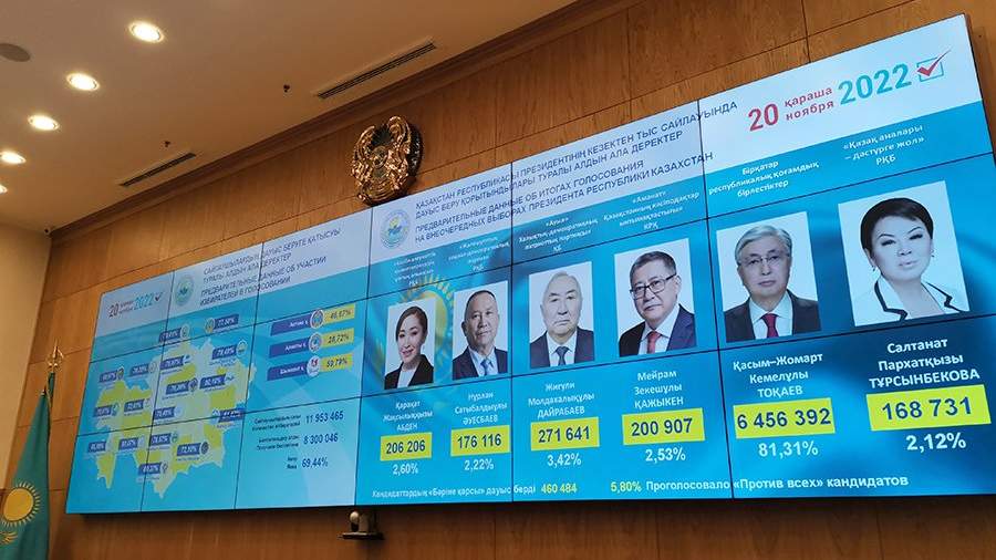 Ранее сообщалось, что действующий президент Казахстана Токаев побеждает на выборах главы государства с 81,31% голосов, которые прошли 20 ноября. Второе место на выборах получил кандидат от партии «Ауыл» («Село») Жигули Дайрабаев с 3,42% голосов избирателей.