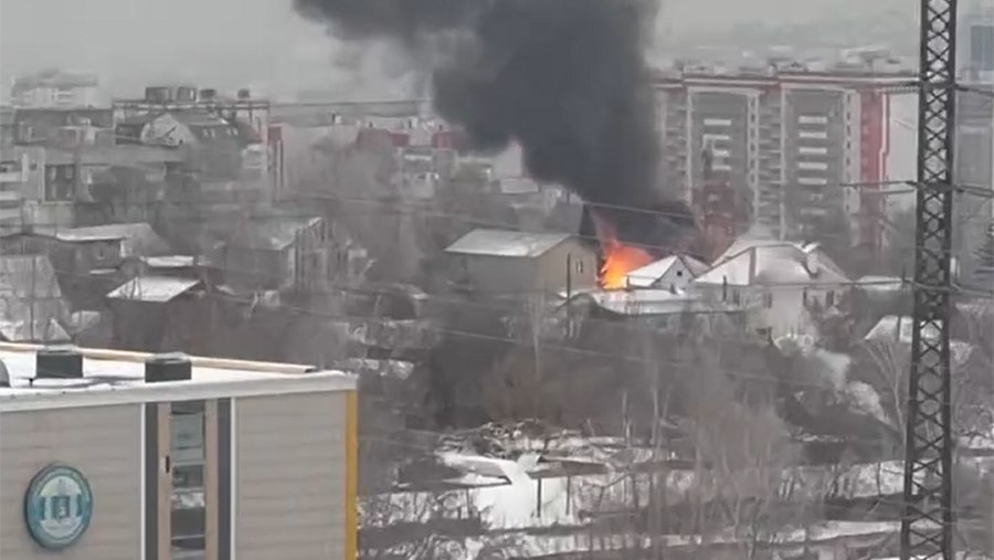 Отмечается, что огонь перекинулся на соседний дом. Пожар локализован на площади 150 кв. м.
