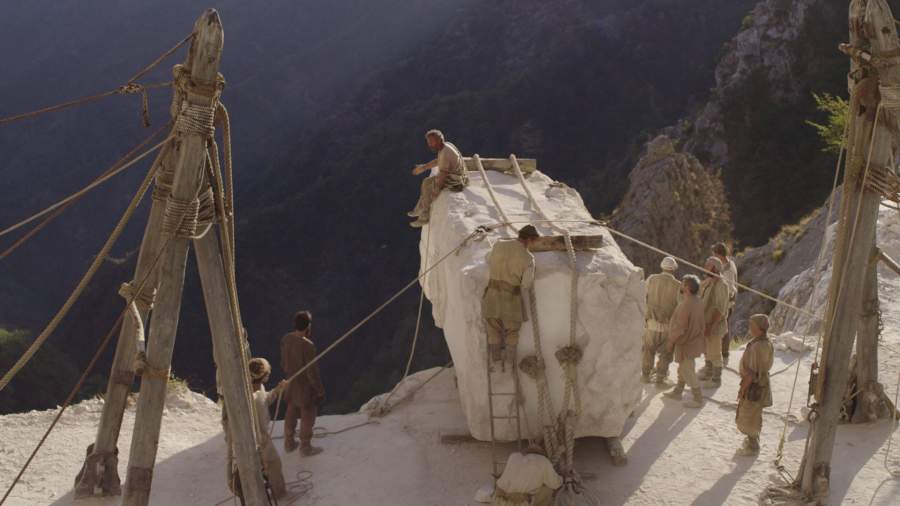В повторный прокат выходит «Грех» Андрея Кончаловского — пластичная, предметная, красочная и жесткая зарисовка о жизни скульптора Микеланджело Буонарроти, рассеянного и алчного гения, вознесенного на вершины славы. Ткань повествования строится на противопоставлении божественного и «слишком человеческого». Не случайно витающий в сакральных высях своих художественных прозрений и проводящий большую часть экранного времени на каменоломнях Каррары художник наделен биографически достоверной карикатурной наружностью.