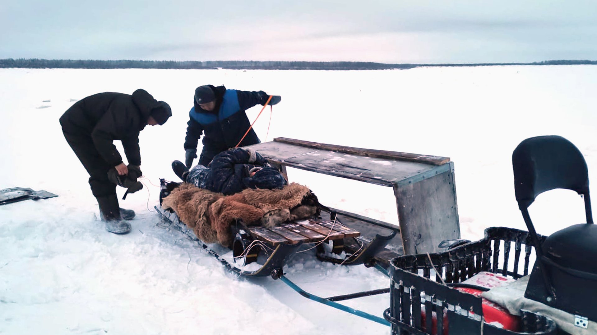 Сотрудники МЧС немедленно отреагировали на обращение и на снегоходе прибыли на место. В нартах находилось снаряжение для рыбалки, однако хозяина внутри не было. Спасатели пошли по следам пса и через 400 м обнаружили пострадавшего мужчину. Его сразу эвакуировали на берег и передали врачам. По предварительным данным, он упал и порезался о лед, делая лунку для рыбалки.
