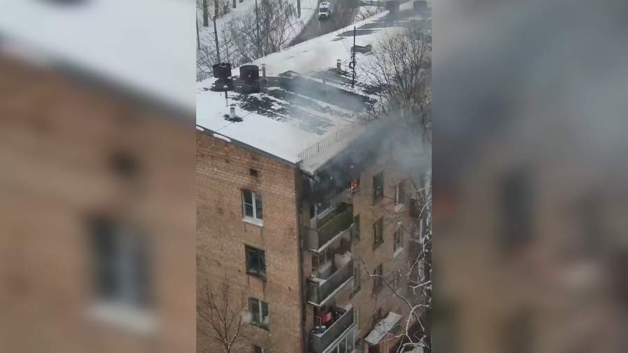 Пожар на Живописной улице в Москве на последнем этаже старой пятиэтажки