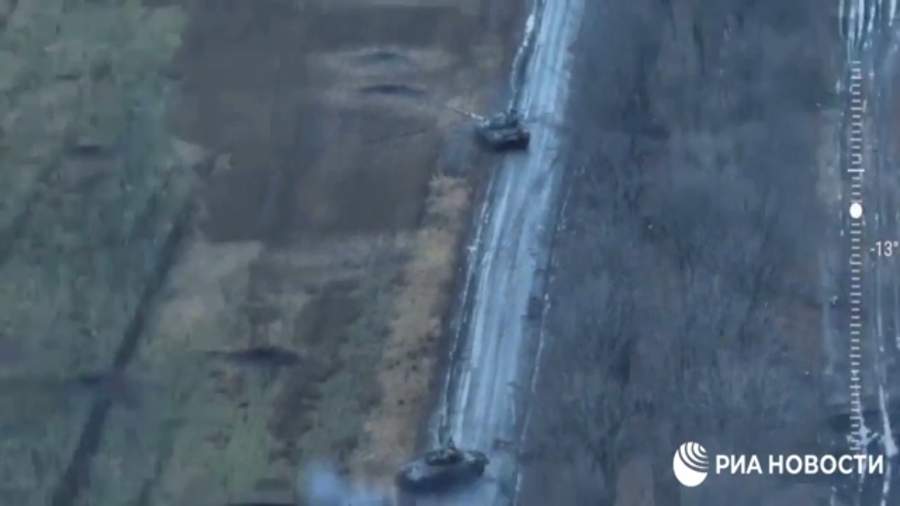 Видео дуэли трех российских танков и двух украинских в Донбассе