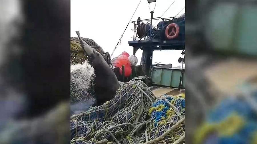 В Петропавловске-Камчатском сивуч забрался на рыбацкое судно за угощением