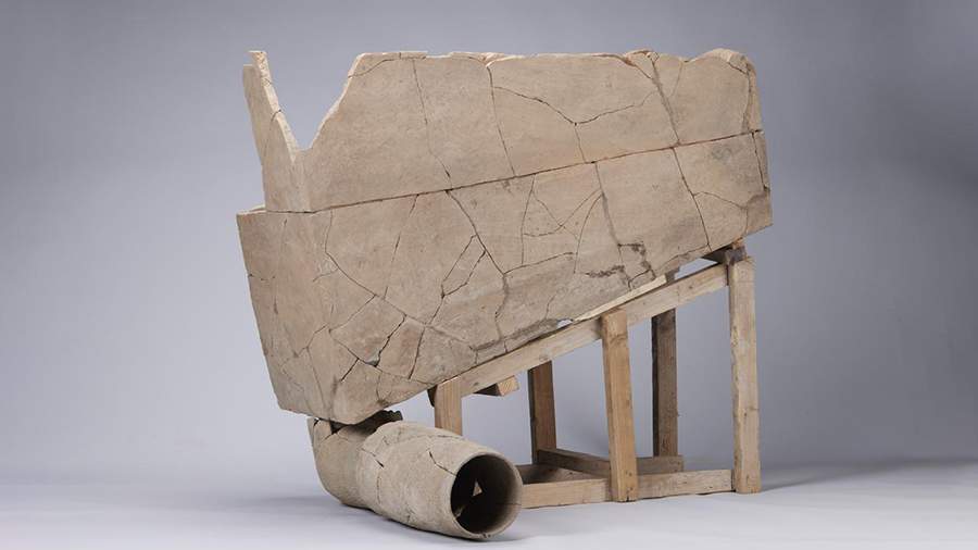 Во время раскопок археологи обнаружили часть конструкции со смывом. Ученые не нашли верхнюю часть конструкции, поэтому пока нельзя точно сказать, как выглядело устройство полностью.