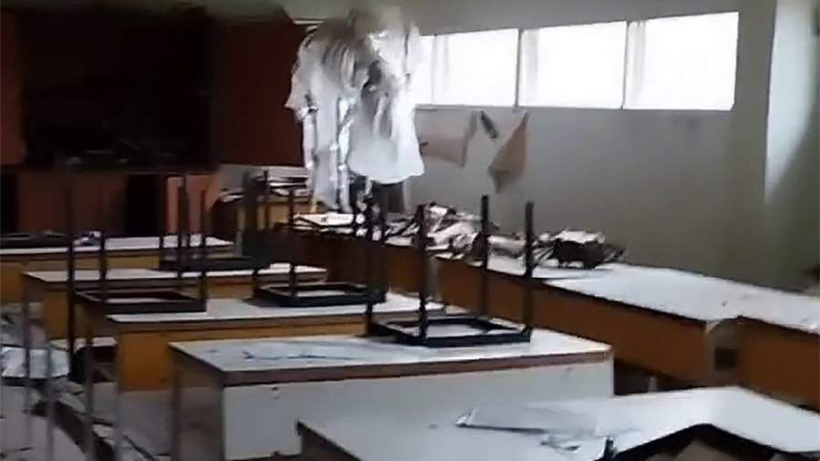 Было зафиксировано 10 попаданий в здание, на крыше остается несколько неразорвавшихся снарядов.
