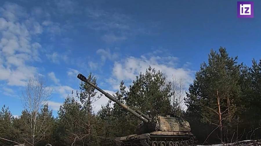 Кадры работы расчетов самоходных гаубиц «Мста-С» и пушек «Гиацинт-С»