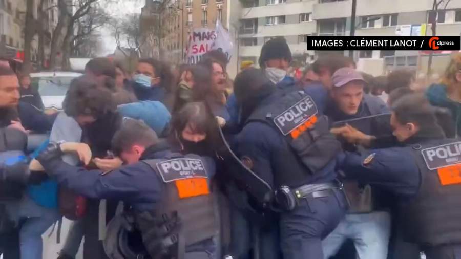 Студенческая демонстрация в поддержку сборщиков мусора проходит по улицам Парижа
