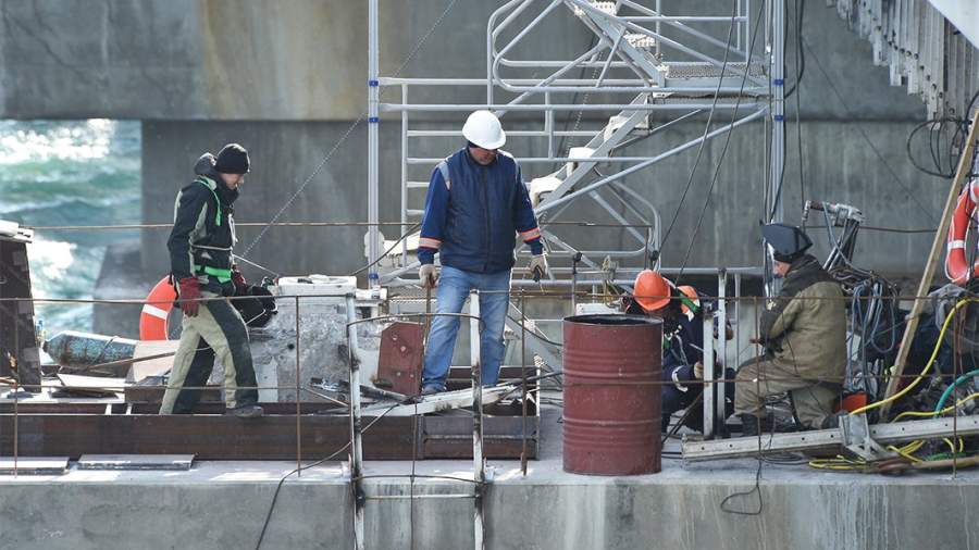 По словам Хуснуллина, две автомобильные полосы Крымского моста полностью работают, также полноценно работает одна из ж/д частей. Восстановление второй части выполняется с опережением срока, подчеркнул он.