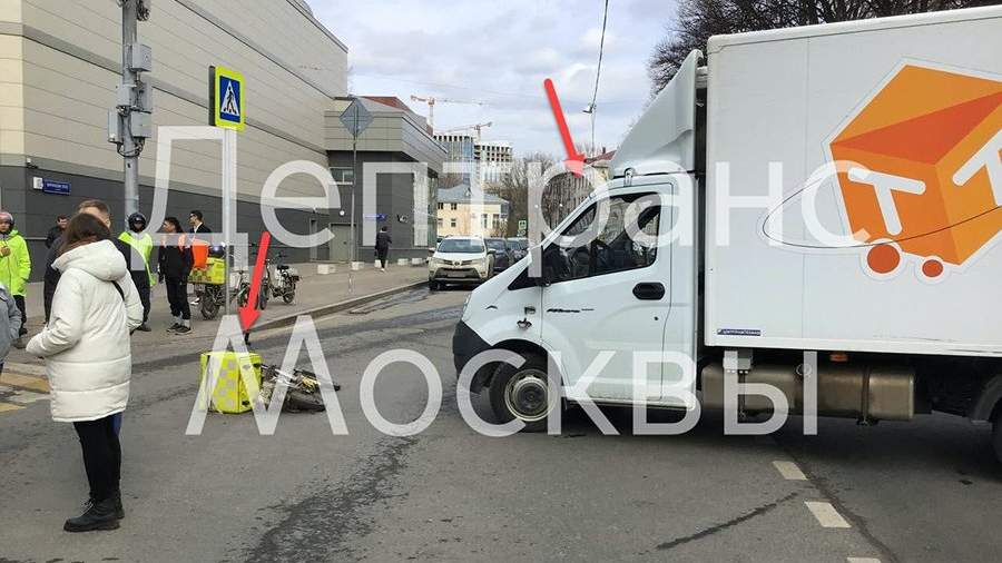 Грузовик сбил велосипедиста на перекрестке в центре Москвы