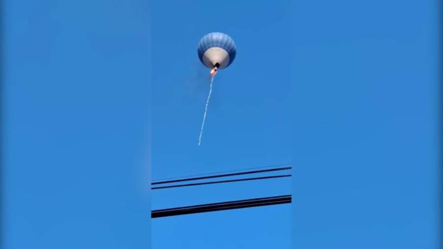 В мексиканском штате Мехико воздушный шар загорелся во время полета