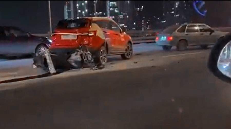 Удар пришелся на заднюю часть автомобиля. Мотоцикл в аварии серьезно пострадал. На видео также можно заметить граждан, которые пытаются оказать помощь пострадавшим.