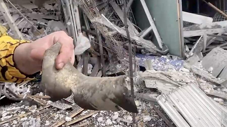 На предоставленных им кадрах видно место попадания снаряда в асфальт. Вокруг лежат обломки ракеты и рыночных построек.