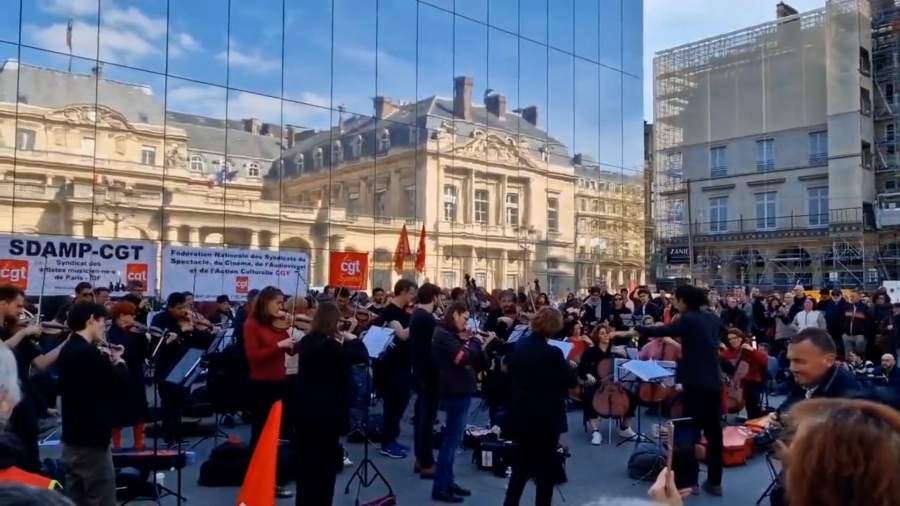 Симфонический концерт против пенсионной реформы в Париже