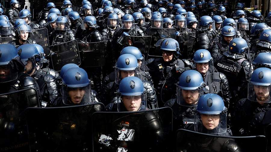 В Париже на демонстрации против пенсионной реформы 13 апреля начались столкновения протестующих с полицейскими — участники акции бросают в правоохранителей бутылки и мусор.
