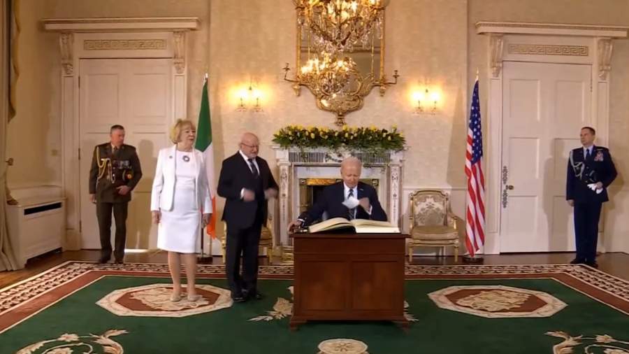 Байдену потребовалась шпаргалка, чтобы подписать гостевую книгу в Дублине
