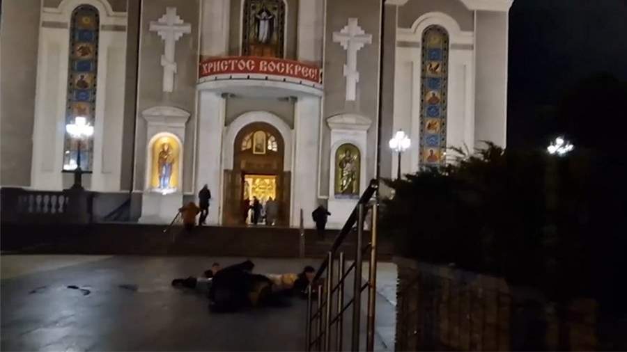 Также в распоряжении «Известий» появились кадры из Спасо-Преображенского кафедрального собора в центре Донецка. На фоне звуков взрывов люди вбегают в церковь, чтобы укрыться, другие — ложатся на землю. По предварительной информации источника «Известий», есть пострадавшие.
