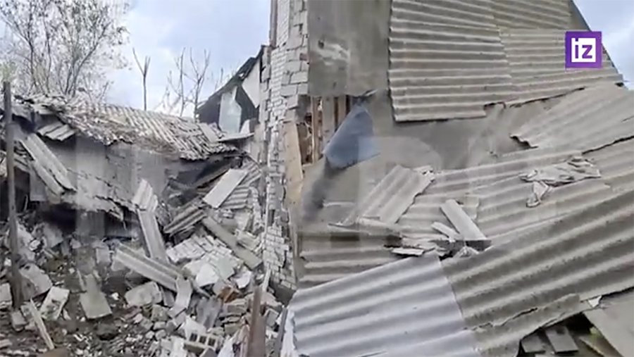 Кадры последствий удара ракеты из реактивной системы залпового огня (РСЗО) по Донецку, которую выпустили украинские военные в пятницу, 28 апреля, показал корреспондент «Известий» Евгений Быковский.
