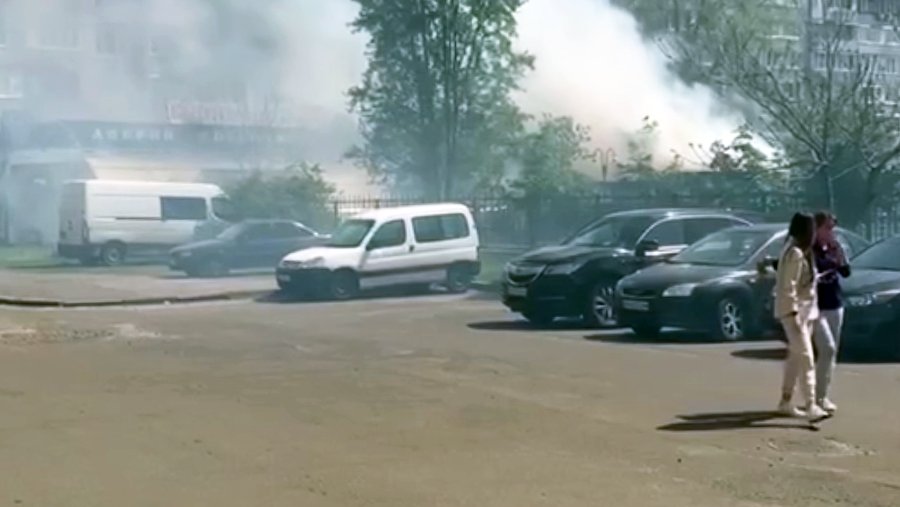 Кадры с места происшествия публикуют местные жители. На них видно, как серые клубы дыма из-за ветра распространяются к жилым домам.