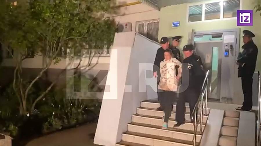 На видеозаписи видно, как сотрудники правоохранительных органов выводят подозреваемую под руки из подъезда жилого дома.