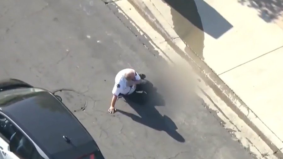 Полицейский шел к машине, пытаясь стряхнуть пчел с головы и лица, в конечном счете он споткнулся и упал на асфальт, ударившись головой. Другой пострадавший получил «десятки пчелиных укусов».