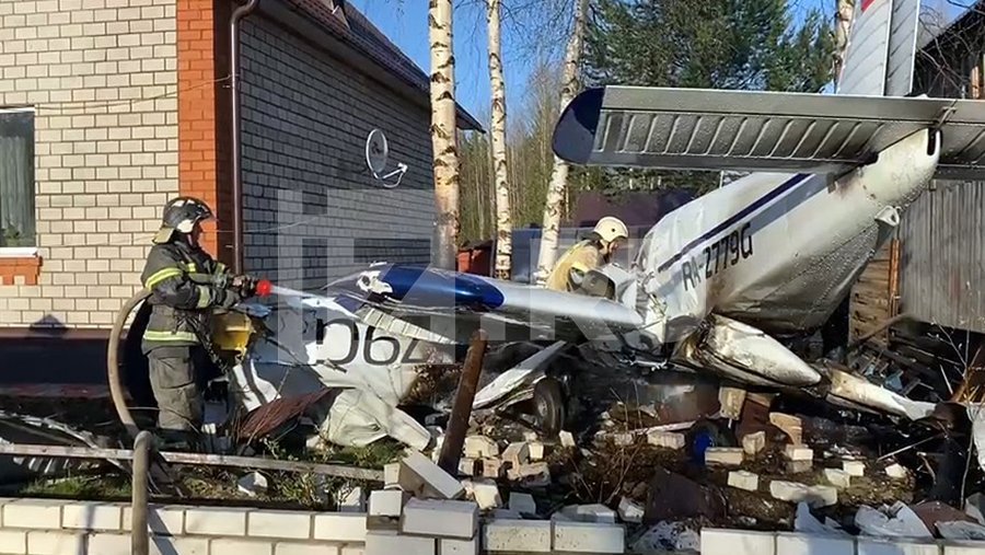 «На борту самолета находились два человека, сейчас их осматривают врачи», — отметил источник издания.