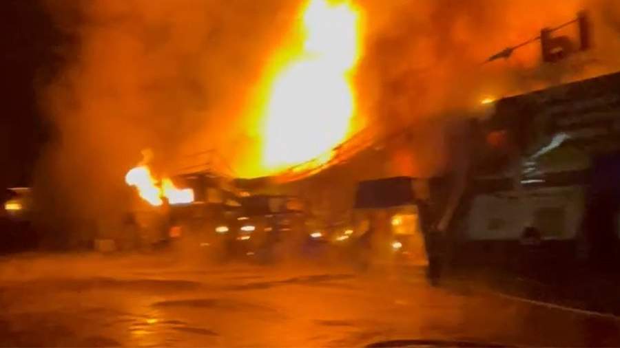 На кадрах с места происшествия, которые появились в распоряжении «Известий», виден высокий столб пламени, поднимающийся над зданием рынка.