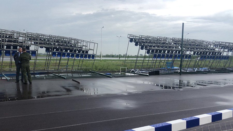 Как рассказала «Известиям» местная жительница, трибуна обрушилась из-за внезапно начавшегося сильного ветра. По ее словам, еще утром погода была хорошей и ухудшилась неожиданно.